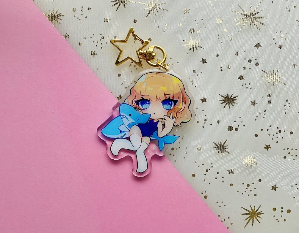 join the shark party with a limited edition key chain! art by the lovely spacedey